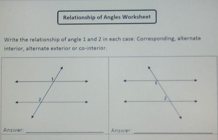 Co-Interior Angles Worksheet - Angles Formed By A Transversal Worksheets :